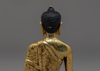 With the Tiny Medicine Buddha statue, you can enter a world of spiritual enrichment and healing. It is a modern masterpiece that seamlessly merges modern technology and age-old spirituality. This statue is a testament to accuracy and modern craftsmanship, with its precisely sculpted structure and harmonic blend of a bright gold gilded finish and a robust copper body.