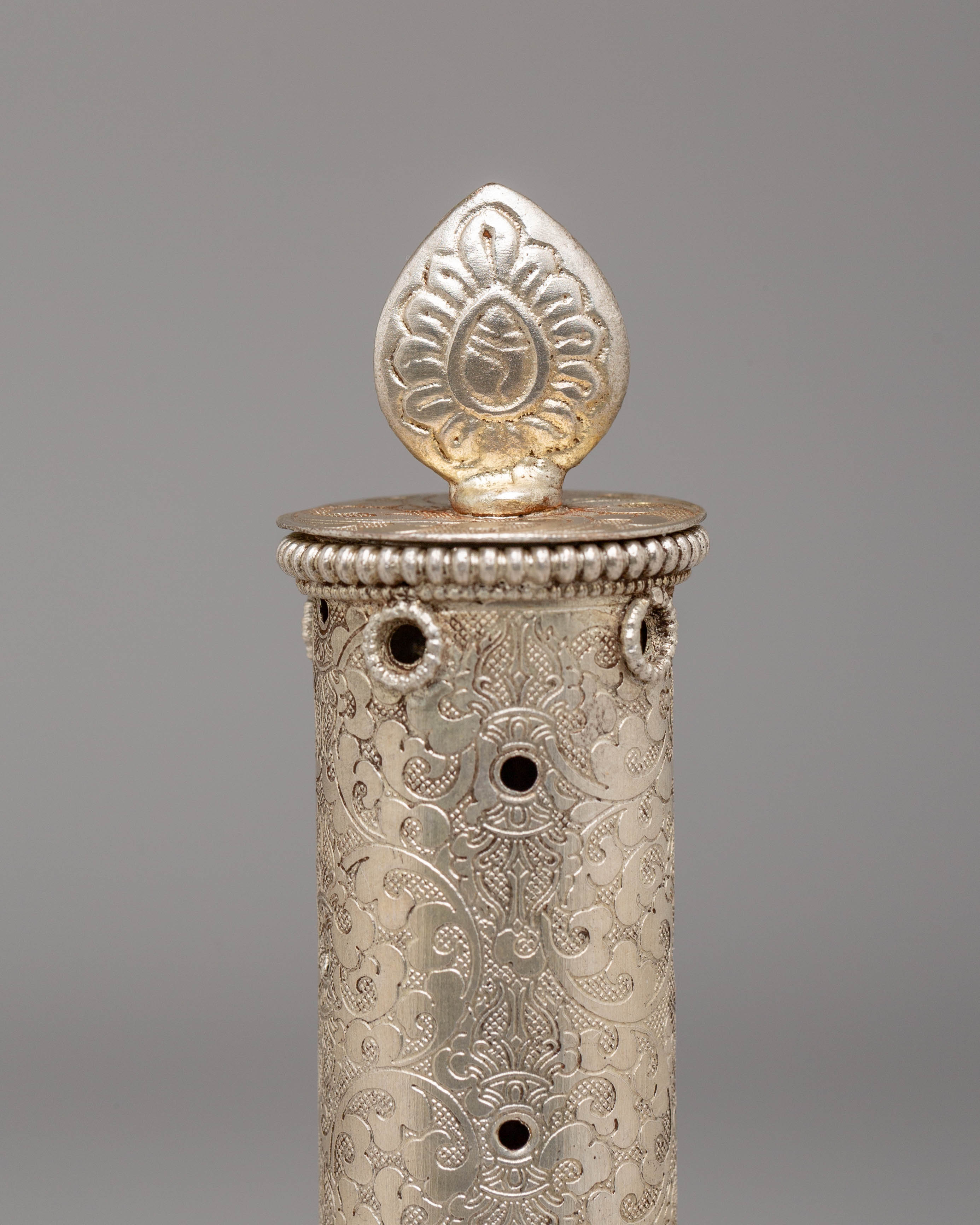 The silver body adds a touch, making this incense holder not just functional but also a decorative piece for your altar or meditation room. Whether used for personal use or as a gift for someone special, this incense holder will elevate the atmosphere of any space.