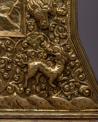 The spiritual elegance of our Handcrafted Brass 4 Harmonious Friends Metal Thanka Wall Hanging will elevate your home decor. This magnificent sculpture, which stands 50 cm tall by 38 cm wide and weighs 1.08 kg, shows the well-known Tibetan motif of the Four Harmonious Friends, which stands for harmony and collaboration.