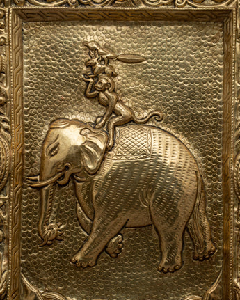 This Thanka wall hanging, painstakingly crafted from brass, showcases exquisite creativity and detailing, demonstrating the commitment and talent of our artists. Its brass construction provides longevity and a brilliant shining, making it an ideal focal point for any space. Our Handcrafted Brass 4 Harmonious Friends Metal Thanka Wall Hanging, which celebrates the everlasting principles of harmony and friendship, adds a touch of spiritual tranquility and artistic beauty to any location, whether it is exhibited in a living room, meditation area, or given as a meaningful gift.
