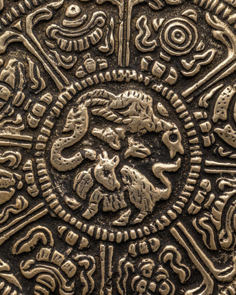 Measuring 14.5 cm in height and 13 cm in width, and weighing 0.33 kg, this brass altar wall hanging combines striking visual presence with intricate detail. The gleaming surface is adorned with sacred motifs that symbolize protection, enlightenment, and auspicious energy, making it a meaningful addition to any spiritual space. Perfect for daily rituals or as symbolic decor, this Buddhist wall hanging enhances your environment by fostering intention, grounding, and serenity. Its timeless craftsmanship and spiritual significance invite a deeper connection to your practice, transforming your shrine or meditation room into a sanctuary of peace and mindful reflection.
