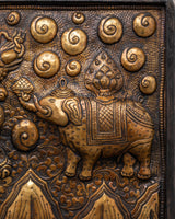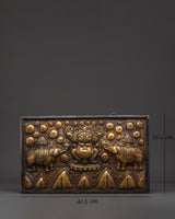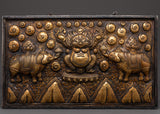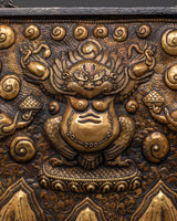 The rich legacy of Indian and Himalayan holy art is reflected in this handcrafted brass wall hanging, featuring traditional motifs rooted in spiritual symbolism. While the iron construction delivers strength, the brass surface offers a warm, golden tint that catches the light nicely. It exudes harmony and a sense of religious intent, whether it is used as the centerpiece for altar decoration or as a decorative accent in your home. The combination of traditional craftsmanship and spiritual meaning in this brass wall hanging makes it ideal for spiritual practitioners, interior designers, and collectors of religious decor.