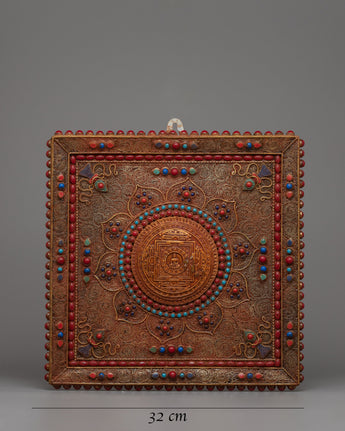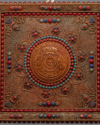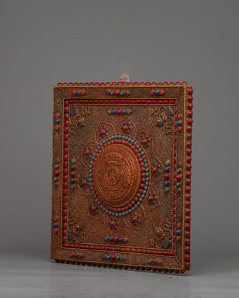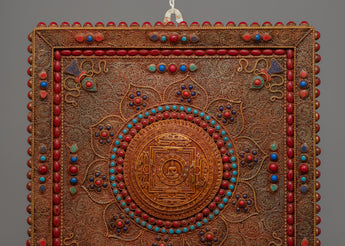Discover the profound calm of our Buddha Metal Thanka, which embodies the best of both spirituality and creativity. A painstakingly crafted Buddha figure with intricate fiberwork emerges at its center, capturing the enlightened presence of the divine. A captivating selection of gemstones has been expertly inlaid around this sacred thanka, giving the object a celestial radiance.