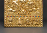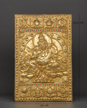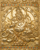 Dzambhala Metal Thangka Wall Hanging | Brass Tibetan Wealth Deity Artwork