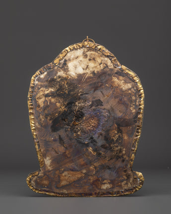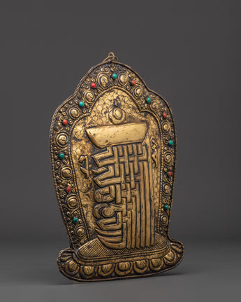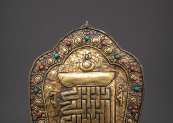 This wall hanging décor is crafted from brass, blending traditional artistry with modern design. Its small size makes it an ideal gift for art enthusiasts or collectors of cultural items. The turquoise and coral stones add to the design's richness, while the brass lends a timeless elegance. Invest in this one-of-a-kind ethnic brass décor today to add a touch of tradition, elegance, and artistry to your living area.