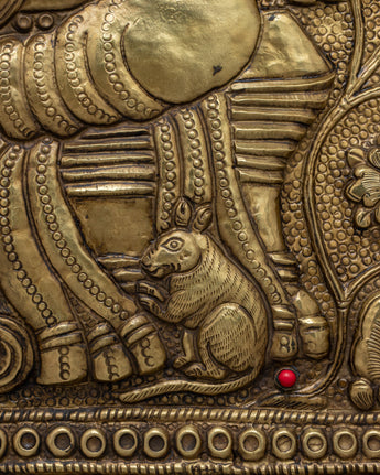 This metal Thanka was created with great care and precision by talented artisans, who were committed to creating a work that was both spiritual and artistic. As the well-known elephant-headed god Ganesh, who removes obstacles and is a symbol of wisdom, this Thanka is a potent and significant addition to any sacred area.