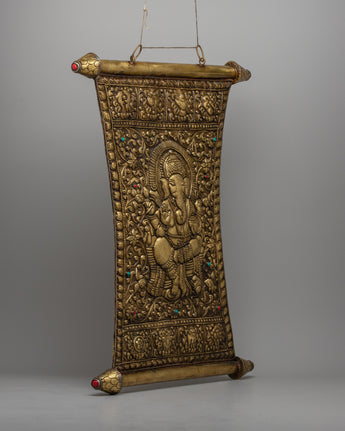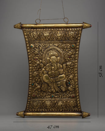 Brass Ganesh Metal Wall Hanging Thangka | Handcrafted Spiritual Art