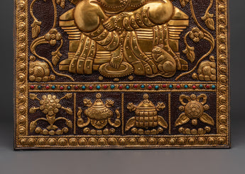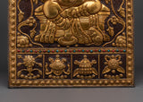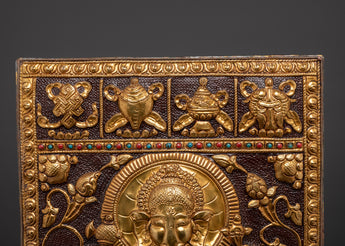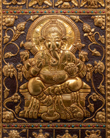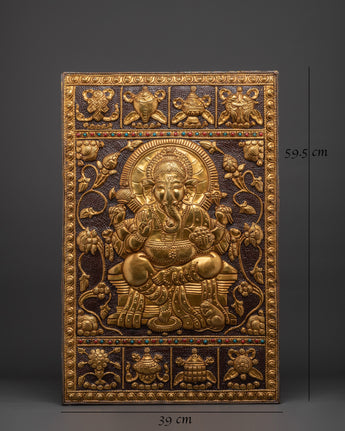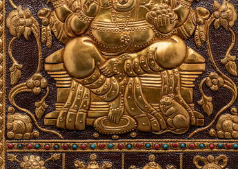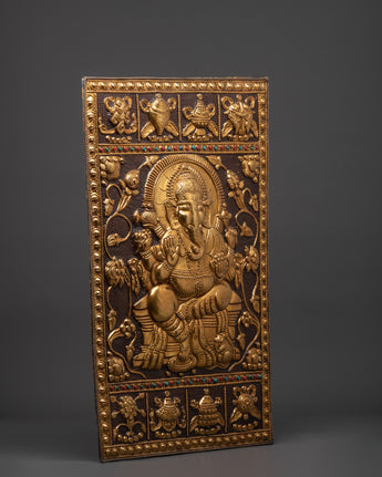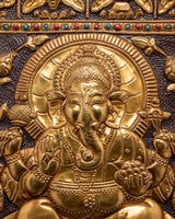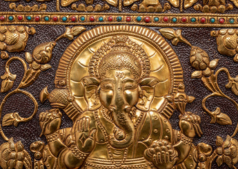 Honor Lord Ganesha's holy presence with this magnificent carved brass wall hanging. This decorative sculpture, portraying the famous elephant-headed Hindu god Ganapati, adds spiritual energy and positive vibes to your home or temple. This Ganesha painting is ideal for individuals seeking blessings of wisdom, prosperity, and good fortune, while also serving as a lovely decorative piece and a sacred symbol of faith.