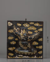 The magnificent figure of the Garuda is displayed in the stunning handcrafted iron Garuda Iron Wall Hanging. This artwork perfectly depicts the essence of the mythological bird-like creature known as Garuda from Hindu and Buddhist mythology, with painstaking attention to detail. Silver and brass decorations are expertly crafted and precisely stitched into the iron body to give the item depth and personality.