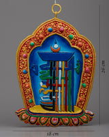 Elevate your living space with the handcrafted Kalachakra Mantra Symbol, a harmonious blend of spirituality and artistry encapsulated in a copper body and brought to life with vibrant acrylic painting, adding timeless elegance and depth to your surroundings.