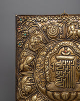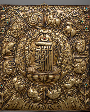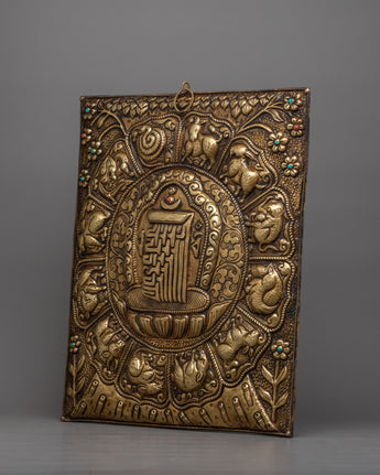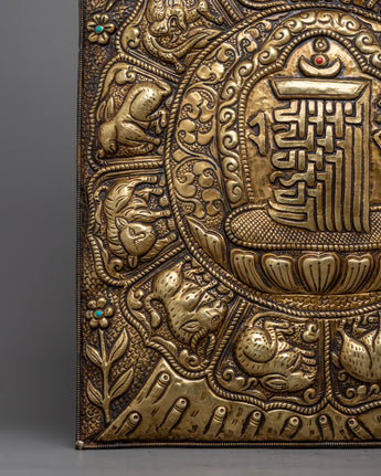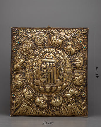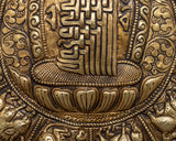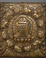 The Metal Wall Hanging is a handcrafted piece of art that is authentic and elegant in every way. While the elaborate Kalchakra and surrounding zodiac signs offer layers of symbolism and spiritual depth, the piece's brass material adds a touch of refinement.