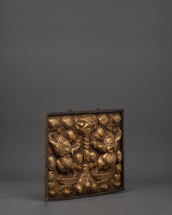 This Garuda wall art is not just a pretty artwork, but also a metaphysical talisman that repels negative influences and attracts positive energy into your space. With its aggressive posture and ornate adornments, the Garuda figure represents heavenly force and guardian energy, making it an ideal addition to your home altar, yoga studio, or ritual place. The golden brass finish showcases the complex carvings, giving it a period feel reminiscent of traditional Tibetan art. This wall hanging, which may be used in spiritual ceremonies or displayed as an artistic centerpiece, captures Garuda's protective energy.