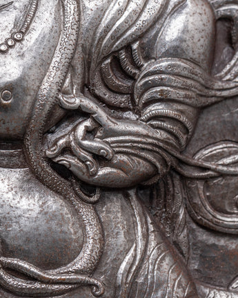 Elevate your environment with this handcrafted sacred wall decor, designed to infuse your space with serenity and spiritual energy. Measuring 41.5 cm in height and 50.5 cm in width, this striking piece is crafted from durable iron, ensuring long-lasting beauty and strength. Its robust material adds a touch of industrial elegance that harmonizes perfectly with the spiritual design, making it an ideal centerpiece for meditation rooms, living spaces, or any area where calm and inspiration are desired. Bring timeless tranquility and meaningful artistry into your home with this exceptional wall hanging.