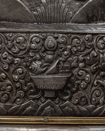 With our Tibetan Animal Metal Thangka, a unique blend of spirituality and artistry, you can immerse yourself in the rich tapestry of Tibetan culture. This Thangka stands 49cm tall and is handcrafted on a sturdy iron and brass body, displaying the profound symbolism of Tibetan fauna in a captivating display.