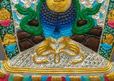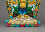 The Tibetan Garuda Wall Hanging, an admired protector divine in Tibetan Buddhism, represents strength, knowledge, and power over negativity. This handcrafted copper wall hanging, painted in brilliant acrylic colors, symbolizes divine energy and spiritual protection. Traditionally recognized for warding off evil and removing evil spirits, the Garuda makes an excellent addition to meditation spaces, home altars, or sacred decor collections.
