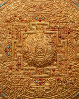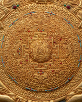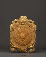 The Wheel of Life Metal Thangka is a beautifully crafted decorative piece made from copper. It features a detailed design that incorporates specific sacred symbols, each imbued with spiritual significance. The Thangka measures 37 cm in height and 26 cm in width, making it a moderately sized artwork suitable for display in a home or spiritual space. It weighs 0.70 kg and features copper craftsmanship. This metal Thangka not only serves as a striking ornament but also as a meaningful representation of the Wheel of Life, often used for meditation and reflection in Buddhist traditions.