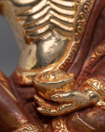 The Milarepa Statue is a stunningly crafted figurine, designed to represent the revered Tibetan yogi and poet, Milarepa. Standing at 13 cm in height and 10.5 cm in width, this statue weighs 0.66 kg and is made of copper, with exquisite 24k gold plating that highlights the spiritual importance of Milarepa’s teachings. The vibrant acrylic colors further enhance the statue's beauty and symbolism, making it a perfect addition to your meditation space, altar, or home décor. This handcrafted piece captures Milarepa’s profound wisdom, compassion, and enlightenment, offering spiritual benefits and an aura of tranquility wherever it is placed.