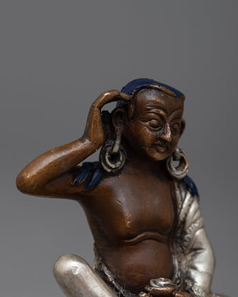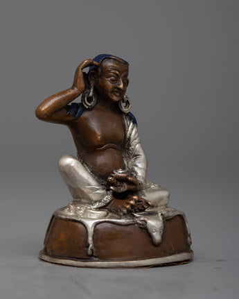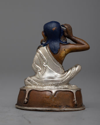 Discover the Jetsun Milarepa Statue, which is beautifully made of oxidized copper and plated in silver. The Tibetan yogi is depicted in this 6.5 cm tall sculpture in a calm, contemplative position that reflects the depth of his spirituality. A stunning addition to any environment, the oxidized copper beneath the dazzling silver layer highlights the delicate craftsmanship.