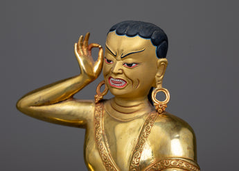 This statue captures the spirit of Milarepa's spiritual quest and his unshakable dedication to the path of enlightenment with its fine workmanship and tranquil look. Practitioners are inspired and guided by its presence, which serves as a reminder of the transformational power of inner understanding, compassion, and dedication as demonstrated by Milarepa's life and teachings.