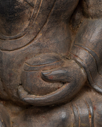 Handcrafted Wooden Milarepa Tibetan Siddha Statue