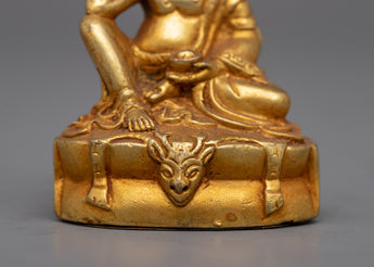Introducing the beautifully carved Milarepa Tibetan Yogi Statue, finished with a 24k gold plating, a symbol of enlightenment and spiritual fortitude. This statue, which stands just 5.5 cm tall, depicts the renowned Tibetan yogi Milarepa, who is well-known for his profound insight and beautiful teachings. The delicate details of his meditation position are accentuated by the gold plating, which also creates a cozy, welcoming light that exudes calm and peace.
