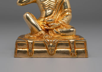 Introduce a profound spiritual work into your space with the Sacred Milarepa Meditation Statue, a representation of wisdom, serenity, and enlightenment. Standing at 13cm in height and 10.5cm in width, and weighing 0.69kg, this statue is crafted from high-quality copper with a gold-plated finish and detailed acrylic color highlights. The depiction of Milarepa, one of Tibet's most revered Buddhist saints, captures his meditative posture, radiating peace and spiritual strength.
