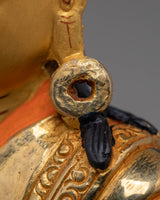 The design of this statue reflects Milarepa's deep commitment to meditation and his journey toward enlightenment. The figure is portrayed in a seated meditation pose, his calm expression and posture embodying inner peace and devotion. The gold-plated details accentuate the statue's finer details, while the acrylic color adds a vibrant touch, bringing the figure to life. This statue serves as a powerful symbol of perseverance, spiritual awakening, and the transformative power of meditation, making it ideal for meditation spaces, altars, or as a meaningful gift.