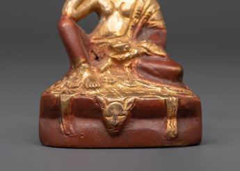 This stunning Tibetan Yogi Milarepa Statue stands 5.5 cm tall and was painstakingly crafted to portray the tranquil and meditative essence of the legendary Tibetan yogi. This unique item, crafted from copper and gold-plated, lends your area an aura of elegance and spiritual significance. The bright acrylic color details bring the figure to life, depicting Milarepa in a calm, meditative attitude that reflects the profound wisdom and peace he conveyed to his disciples. This statue is ideal for your meditation altar, spiritual sanctuary, or as a treasured souvenir, and it has a strong cultural and spiritual connection to the Tibetan Buddhist tradition.