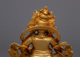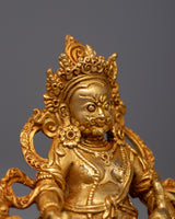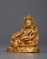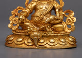 Presenting the Dzambhala Prayer Statue, a magnificent 24k gold-plated copper sculpture that is skillfully machine-made. The essence of Dzambhala, the Buddhist deity who bestows wealth and prosperity, is embodied in this magnificent statue. The statue is a stunning addition to any spiritual environment or private collection because of the rich gold plating, which draws attention to the intricate craftsmanship and emphasizes the deity's tranquil countenance and symbolic qualities.