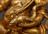 The ruler of wealth and the rescuer of the north are depicted in the Buddhist sculpture of Kuber, also known as Dzambhala. Dzambala's blessing and the worth of his way of life are global. It helps us to develop all good fortune and happiness while decreasing or removing all bad luck and impediments. Hindu gods assigned Kubera the task of granting prosperity to believers. For Vajrayana practice, this gold gilded Dzambhala statue is fantastic.
