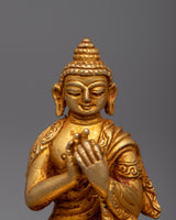 The Primordial Buddha Vairocana Statue takes you to the realm of transcendence. Crafted with great care on an copper body, this sacred figure stands at 5.5cm tall and radiates the primordial spirit of enlightenment and cosmic wisdom.