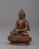 Immerse yourself in the heavenly light of the Tibetan Ratnasambhava Buddha Statue. Machine Molded with careful perfection on an oxidized copper body, this spiritual sculpture stands 5.5cm tall and exudes a sense of profound compassion and richness.