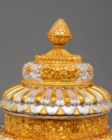 This Handmade Tibetan Ritual Rice Pot is a stunning spiritual artifact designed to enhance meditation and ritual practices. Crafted from copper with electro-gold and electro-silver plating, it radiates sacred energy and beauty. Measuring 29 cm in height and 27 cm in width, this rice pot serves as a powerful focal point for your altar, bringing harmony and tranquility to any space. Its intricate design not only adds visual appeal but also promotes mindfulness and devotion during rituals.