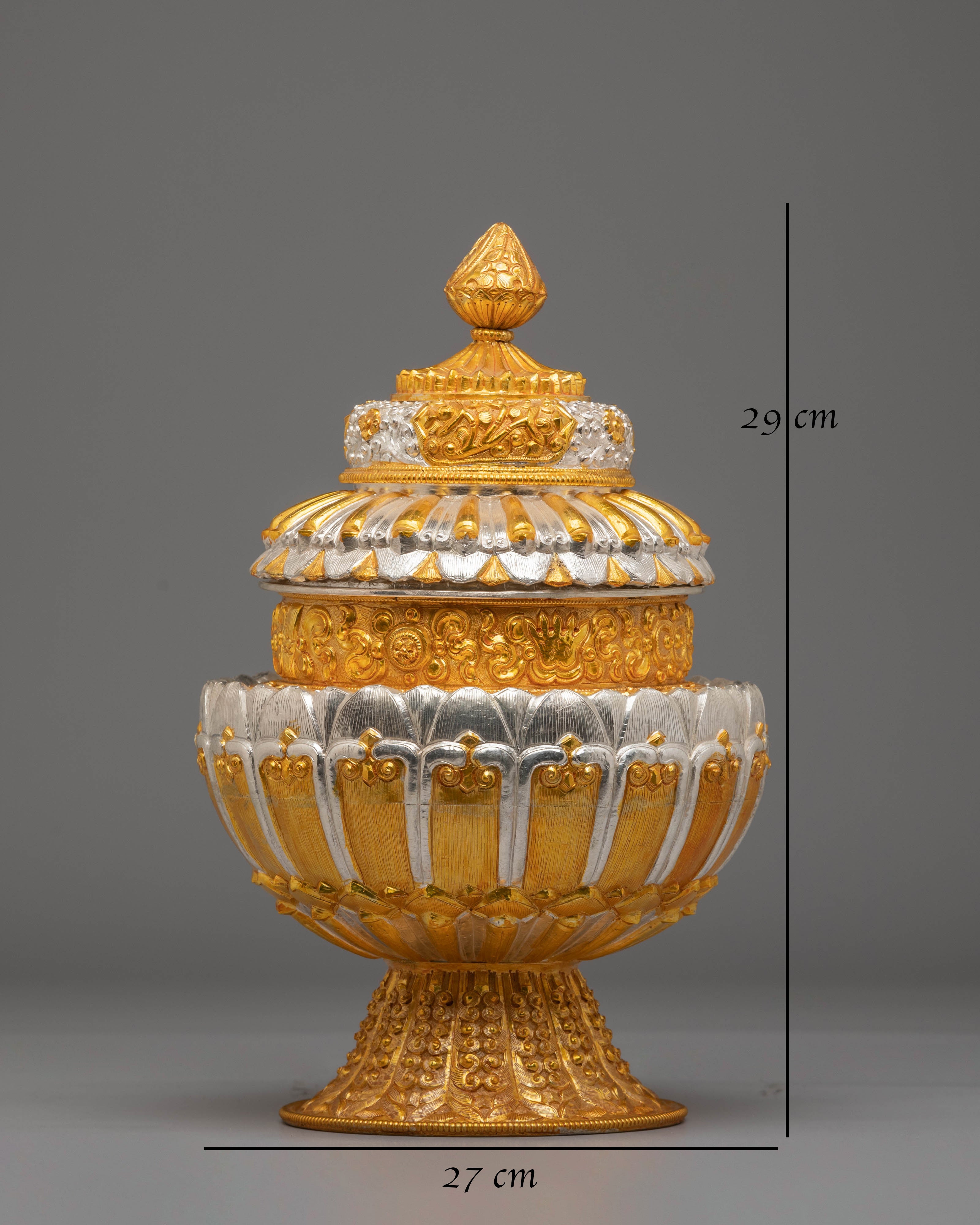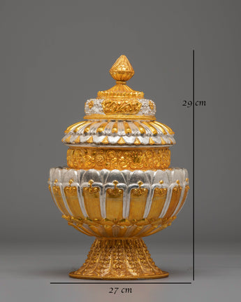 Perfect for practitioners seeking to deepen their spiritual journey, this rice pot is ideal for meditation, offering, or as a decorative piece that honors ancient traditions. Its elegant craftsmanship and spiritual significance make it an essential addition to any sacred space, inviting positive energy and blessings into your home. Elevate your practice with this exquisite relic, which will enrich your meditation sessions and bring a sense of peace and reverence to your rituals.