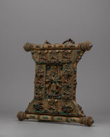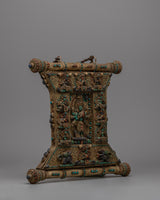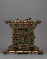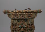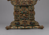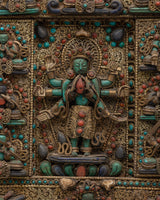 This thangka is embellished with semi-precious stones, such as lapis lazuli, turquoise, and coral, in addition to its intricate workmanship. In addition to their remarkable appearance, these stones have profound spiritual meaning: lapis lazuli represents wisdom and truth, coral symbolizes vitality, and turquoise offers protection. These components come together to form a potent symbol of protection, compassion, and spiritual enlightenment that enhances any sacred area profoundly.