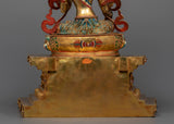 A tranquil Buddha watches over the holy congregation from above, completing the tree-like depiction of spiritual nourishment and shelter. Each detail is a work of art, enrobed in brilliant 24k gold and adorned with elaborate acrylic paintings that reflect the different traits and benevolent energy of the Tara deities.