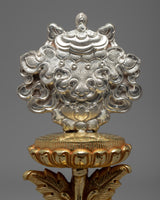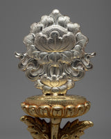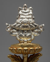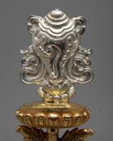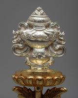 The Vase of Great Treasures is a traditional symbol of good fortune representing the perfect nature of the dharma, longevity, and prosperity.