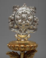 The Eight Spoked Wheel known as the Wheel of Dharma represents the Noble Eightfold Path of the Buddha dharma. The wheel that leads to perfection.