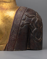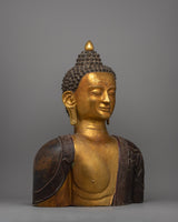 Featuring the Buddha Head Statue, an exquisitely handcrafted sculpture that perfectly portrays the calm and contemplative nature of the Buddha. This magnificent statue, composed of an exquisite copper body and sophisticated gold plating, perfectly depicts the Buddha's serene and enlightened countenance. Because of the painstaking craftsmanship, this statue is a magnificent illustration of Buddhist principles, which captures traditional Tibetan handicrafts' rich spiritual legacy and artistic quality.