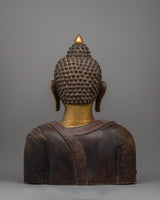 This Buddha Head Statue represents fine craftsmanship and profound spiritual principles, and it is more than just a pretty ornament. The essence of traditional Tibetan art is captured through the use of copper and gold plating, which gives durability and a timeless beauty. Each intricate detail meant to evoke the Buddha's enlightened qualities provides a spiritual and artistic delight for the eyes. This precious statue is a valued addition to any collection or sacred space, presenting as a monument to Buddhism's rich spiritual and creative tradition.