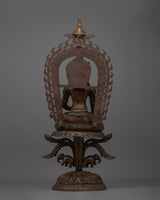 This Shakyamuni Buddha Statue is not just a spiritual object, but also a gorgeous work of art that brings peace and reverence to any setting. Whether displayed in a meditation room, sacred shrine, or as a beautiful centerpiece, this statue is a timeless reminder of the Buddha's teachings and the way to inner peace. Its large size, detailed craftsmanship, and oxidized copper finish make it a distinctive and important addition to any home or spiritual collection.