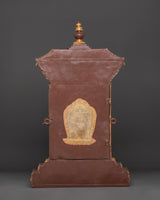 Enhance your meditation practice with this fantastic Buddhist Ghau Box depicting Shakyamuni Buddha. Standing 67 cm tall and 40 cm broad, this meticulously carved shrine creates a powerful focal point in any room, welcoming tranquility, clarity, and spiritual protection. It weighs 8.978 kg and is designed with precision to provide a strong connection to Tibetan Buddhist teachings. This wonderful sculpture not only functions as an altar box but also as a sign of wisdom and divine protection.