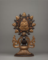 This Buddhist ceremonial set serves as a spiritual channel for meditation, devotion, and ritual offerings, in addition to being a visual amazement. The King and Queen represent a balance of wisdom and method, while the Dharma Wheel represents the way to enlightenment. The protector deity acts as a spiritual guardian, promoting courage and inner strength. This excellent collection is ideal for practitioners, collectors, and spiritual seekers who want to enhance their sacred environment with profound, strong Buddhist iconography.
