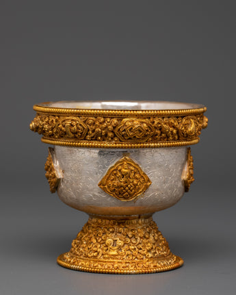 Buddhist Silver Offering Bowl Set | Sacred Tools for Devotional Offerings