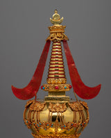 A Buddha statue housed inside the bumpa is the distinctive feature that makes this spectacular stupa stand out. This central Buddha acts as a potent focal point, inspiring you in your spiritual and meditation practice and signifying the existence of enlightened wisdom. As a daily reminder of the road to enlightenment and the enduring power of spiritual devotion, picture the sensation of calm and tranquillity this precious object could provide to your altar or meditation room.