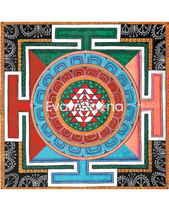 Our Colorful Shree Yantra Mandala not only captivates the eye with its vivid array of hues but also embodies profound spiritual significance and cosmic harmony. The Shree Yantra holds deep symbolic meaning in Hindu and tantric traditions. As a symbol of the divine feminine principle and cosmic energy of creation, it represents the interconnectedness of the universe and the infinite abundance that flows through it. Meditating upon the Colorful Shree Yantra Mandala allows practitioners to align themselves with these divine energies, fostering spiritual growth, abundance, and inner peace. It serves as a powerful reminder of the abundance and blessings that surround us, inviting individuals to tap into the limitless potential of the universe and manifest their deepest desires with clarity and intention.
