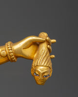 This Copper Mahakali Statue with Gold Plating (27.5cm x 26.5cm, 5.32kg) is a striking representation of Mahakali, the goddess of destruction, transformation, and protection. Crafted from copper with intricate gold plating, this statue captures her powerful form, standing as a symbol of spiritual awakening and the transformative power of divine feminine energy.