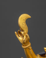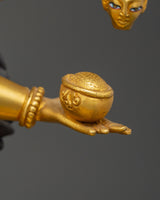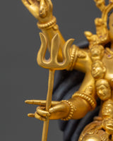 Mahakali, depicted with fierce energy and a protective stance, is revered in Hinduism for her role in removing obstacles, purifying the soul, and transforming darkness into light. The copper body adds strength, while the gold plating symbolizes purity, divinity, and her elevated spiritual status. This beautifully crafted statue is perfect for your altar, meditation space, or as a powerful decorative piece to inspire transformation and protection.