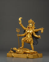 Copper Mahakali Statue with Gold Plating | Goddess of Transformation