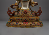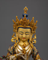 This Vajrasattva statue is more than just a gorgeous element; it also acts as a powerful spiritual tool. Vajrasattva is revered in Tibetan Buddhism as the embodiment of purity and the destroyer of spiritual barriers. This statue's craftsmanship and materials make it not just a valuable collector's piece but also a sacred object that promotes attention, meditation, and inner transformation. This statue is ideal for both devotees and collectors, bringing blessings, clarity, and rebirth into your sacred place.